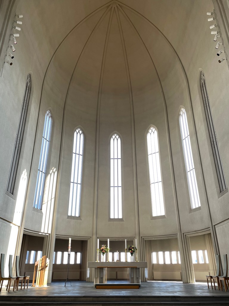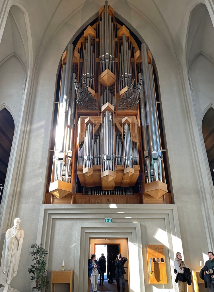 First on my list was a visit to the Hallgrimskirkja, not because I’m particularly religious, but because I like unusual architecture. Hallgrimskirkja is impressive, at 74.5m its curved, light grey spire and graceful wings dominate the Reykjavik skyline. It is beautiful and unlike any building I’ve seen. Set on the top of a hill it is one of the city’s best-known landmarks. The interior is modern, light, cool and quite beautiful.
