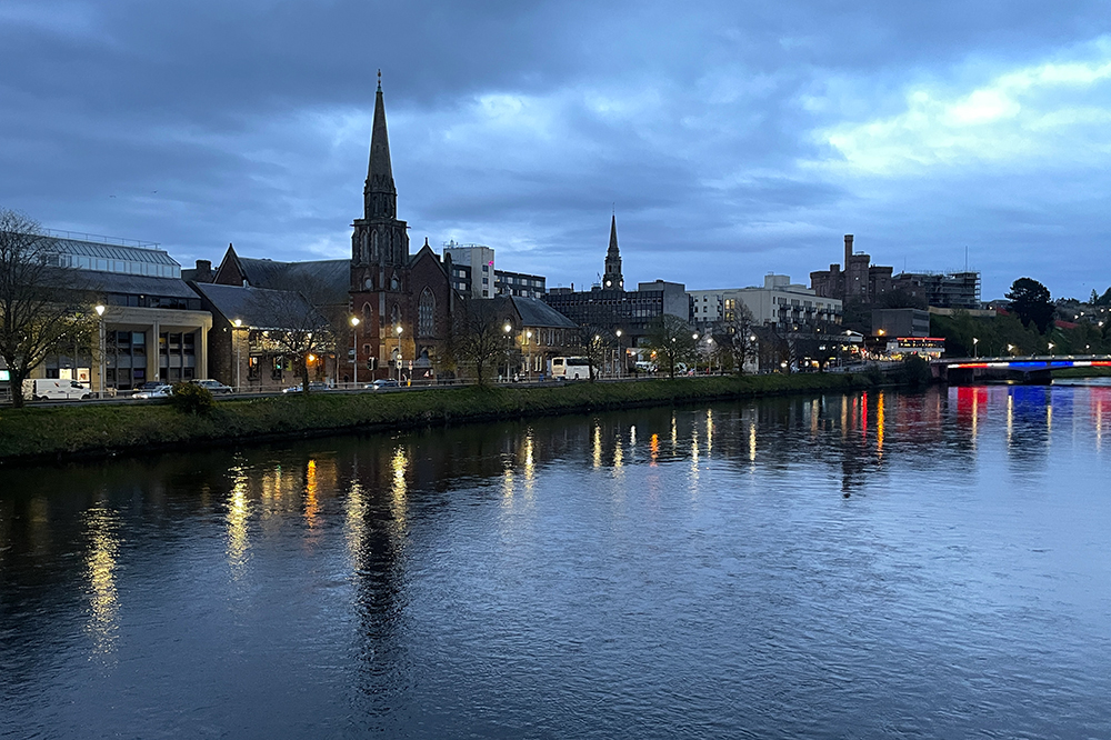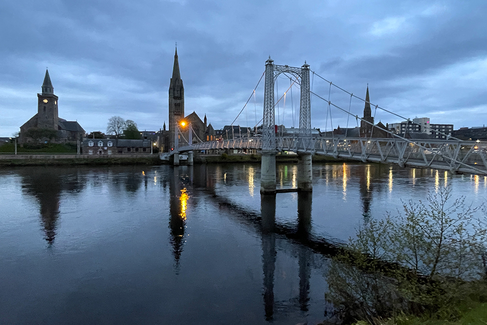 We made our way along the River Ness to the “Tiger on the Wall” for dinner where we chose a selection of delicious curries and my companions were able to refresh themselves with a beer or two. Thankfully we were able to walk some of the food off on our way back to the Winmar, taking some great nighttime photos of the river lights.