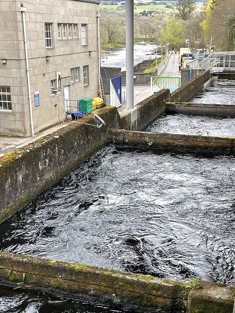 Our walk crossed back over the river at the Pitlochry Dam and the fish ladder where migrating salmon make their way up the 86m dam wall to their spawning grounds in the Perth Highlands. It’s an interesting place and well worthy of a stop.