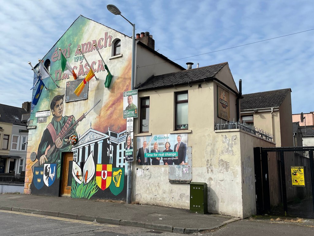 As I was travelling on a budget I booked a bed in a hostel but it was actually a BNB situated a little way out in the suburbs. My host was Peter, my twin bedroom was huge and thankfully on the ground floor. Most hosts are a mine of information and Peter was no exception. He gave me a firsthand account of his experience in “The Troubles” of Ireland and the one thing he told me which stuck in my mind was the fact that, while everything seemed peaceful, the tension was still there bubbling quietly beneath the surface!