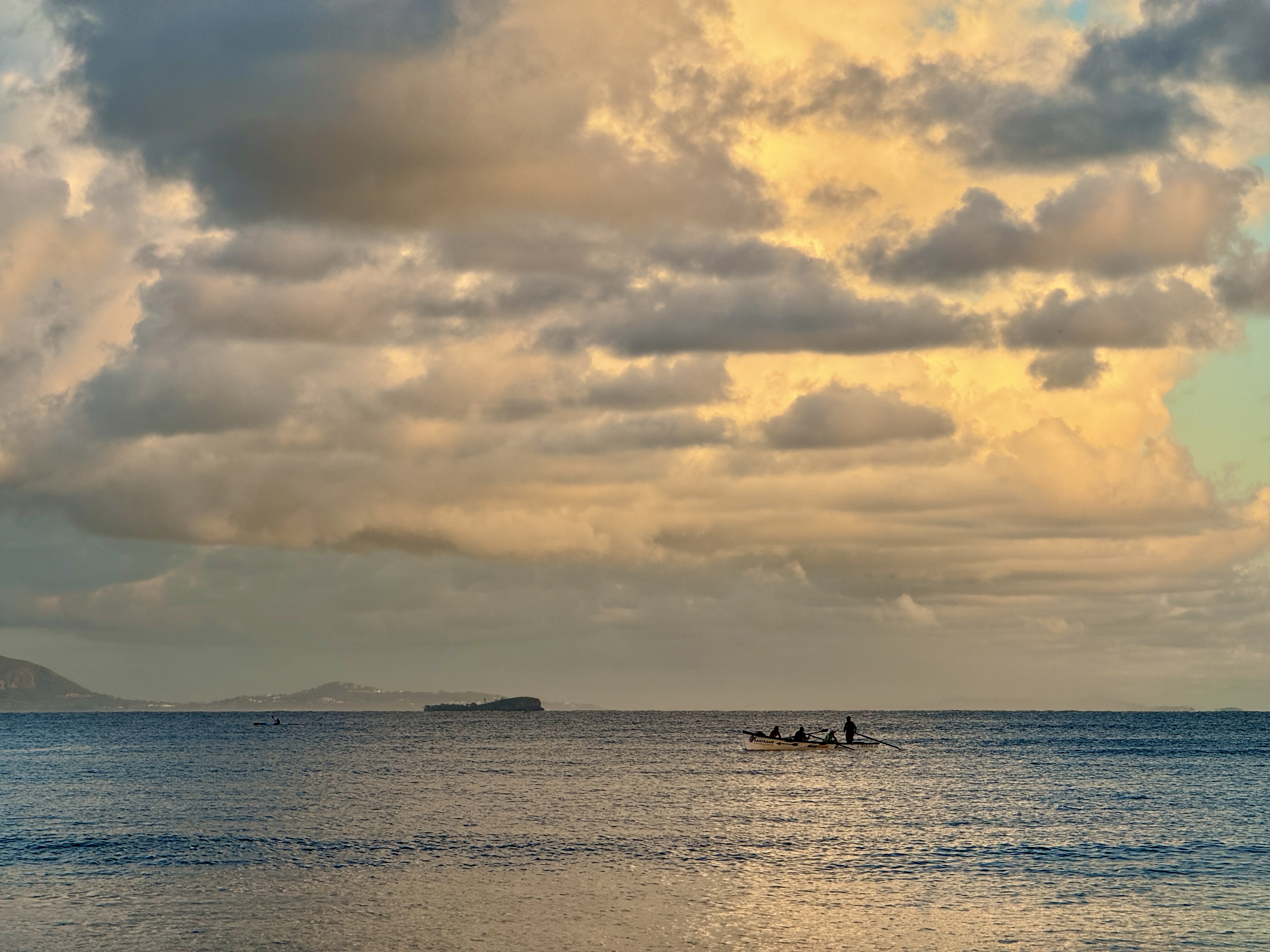 The following morning, sunrise at the beach – my favourite time. It’s usually quiet as the few people who venture out early are intent on walking, jogging, swimming or boating. If I’m lucky I’ll get a few clouds skidding across the sky and the odd wave to add interest. There were few waves but the clouds and sky made up for the lack.