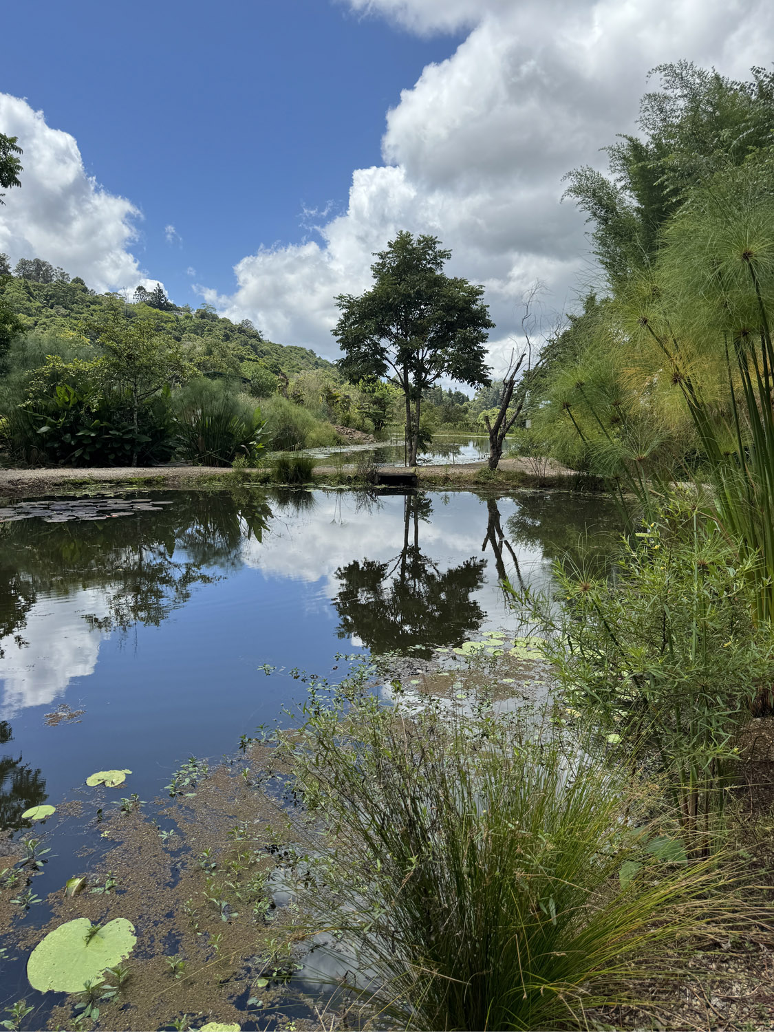 The series of ponds were surrounded by lush grasses, ferns and trees creating an idyllic atmosphere and once again we were treated to magnificent views of the Glasshouse Mountains. Whenever I see that view I would love to be fit enough to attempt the climb to the top of one of the mountains but my sense of balance – if I ever had one – is nonexistent.