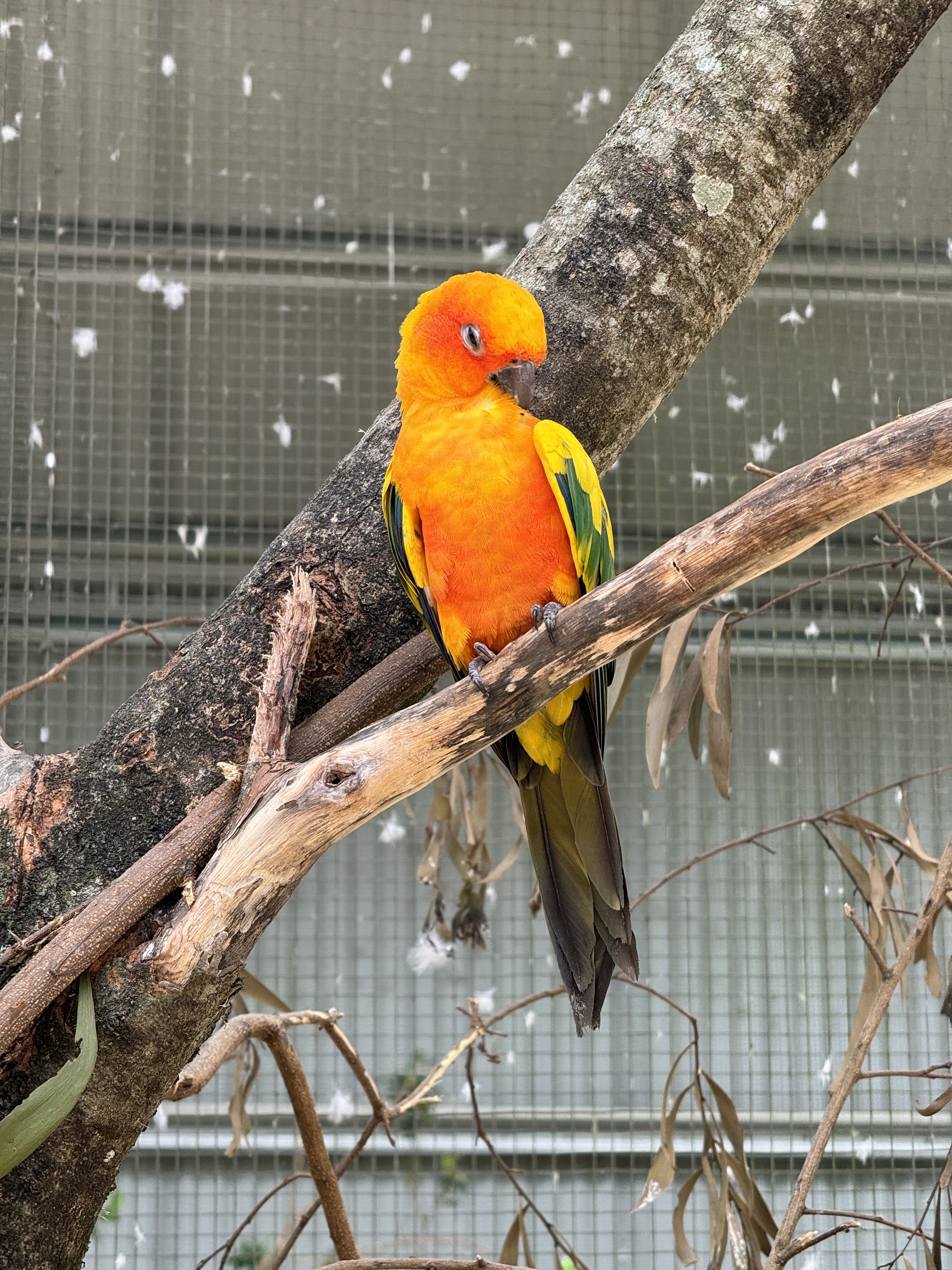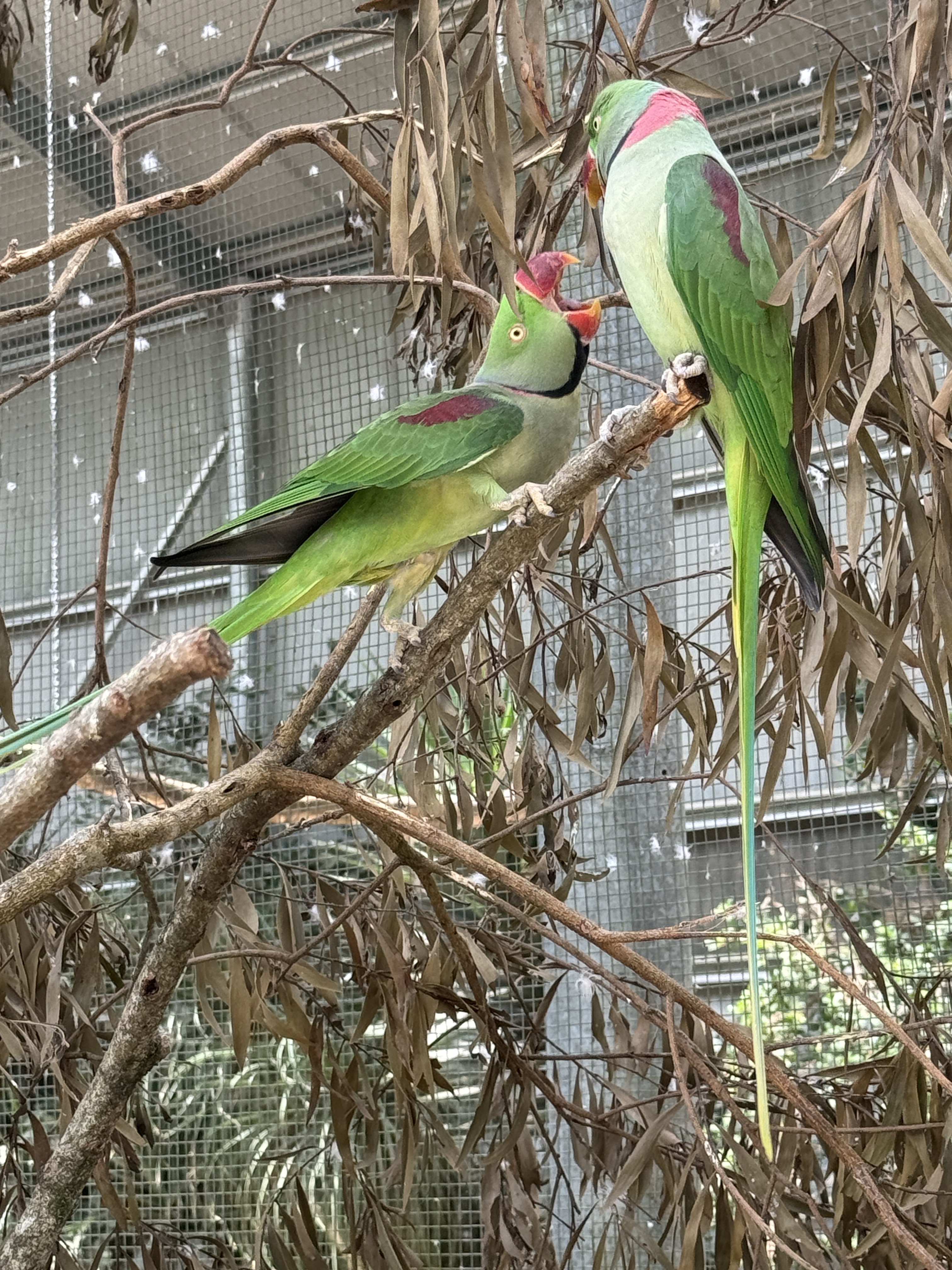 We were directed to remove all jewellery and hats with buttons before entering the aviaries, then we entered a world of beaks and feathers. The birds were beautiful, and the interactive tour gave us a wonderful opportunity to get close to birds we’d normally only see at a distance – or not at all. Some very large Macaws were definitely over friendly, and heavy, with sharp claws which dug into the scalp, but all did have plenty of room to fly freely within their enclosures.